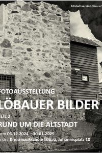 In der zweiten Folge der Ausstellungsreihe LÖBAUER BILDER begaben wir uns auf eine fotografische Zeitreise, einmal RUND UM DIE ALTSTADT. Dort wo einst vom Mittelalter bis weit in das 19. Jahrhundert hinein wehrhafte Mauern die Stadt schützten, haben sich über einen Zeitraum von ca. 200 Jahren Grünanlagen, Straßen und bebaute städtische Plätze entwickelt. Was nach dem Abbruch der Stadtmauern entstanden ist und welche interessante Details sich hier und da „verstecken“, kann der Besucher beim Betrachten der Fotoausstellung selbst erkunden.